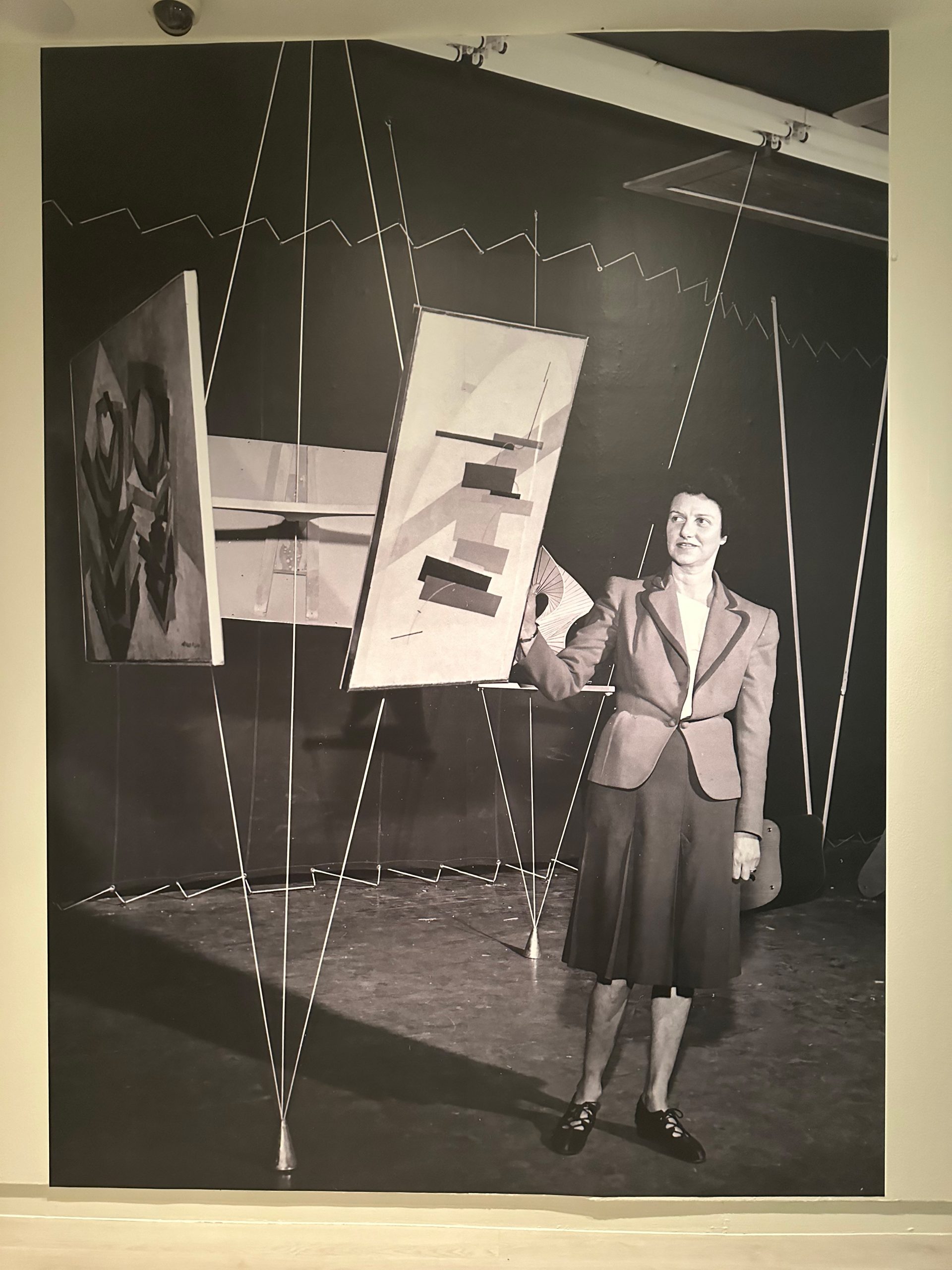 Fotografía de Peggy Guggenheim en su galería de Nueva York