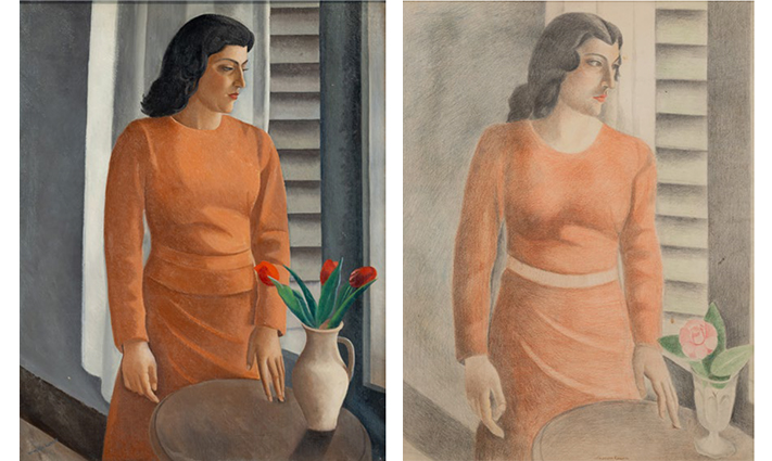 Es especialmente llamativo el descubrimiento en un altillo de una versión de Figura son florero (1942) en el que la misma persona retratada adquiere rasgos andróginos (figura masculinizada con ropa femenina, sombra de vello facial, rasgos angulosos, etc.) que nos ayuda a vislumbrar lo transgresor y la modernidad del pintor en cuanto al género, así como la necesidad de ocultación.