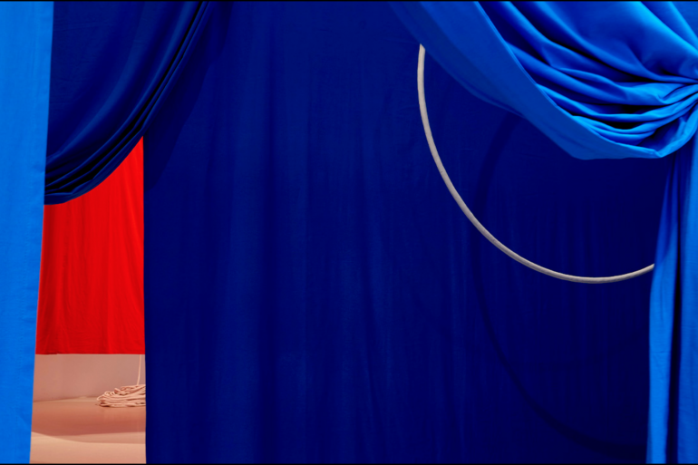Vista de la exposición Ulla von Brandenburg. Espacios de una secuencia (2023) en el Palacio de Velázquez. Archivo fotográfico del Museo Reina Sofía. Espacios de una secuencia es una invitación a las entrañas de un escenario. Exposición de Ulla von Brandenburg en el Palacio de Velázquez de Madrid. Telas flotantes, atrezo y cortometrajes conforman esta propuesta de Ulla…